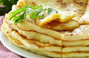 Кукурузную муку ошпарить кипятком, замесить густое тесто, затем добавить пшеничную муку, вымесить, посолить и оставить на 5— 6 часов в прохладном месте. Разделать на лепешки, весом приблизительно по 250 граммов. Обжарить на смазанной жиром сковородке, накрытой крышкой. Подавать с кислым или свежим молоком, сыром, сметаной в горячем и холодном виде.