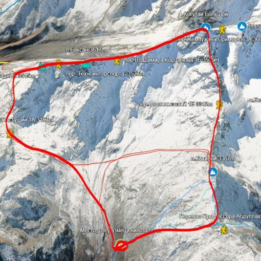 Нитка маршрута: с.В.Баксан — Ущелье Кыртык/Сылтран — Бивуак «Островок» — пер.Суарыкауш — Бивуак «Островок» — Ущелье Кыртык/Сылтран — с.В.Баксан