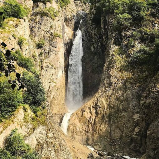 А потом тропка обрывается. Просто обрывается, потому что она не стыкуется с очередным карнизом. Он лежит выше. Примерно на десять метров выше. Как поступить в такой ситуации? Балкарцы придумали: они проложили прямо по скале деревянную лестницу. Только поднявшись по ней – над восьмисотметровой пропастью! – можно попасть на следующий карниз. А с него через узкую – в некоторых местах не больше тридцати сантиметров – природную трещину в скале выбраться на само плато. И эти смертельные трюки, где буквально каждый шаг грозил непоправимыми последствиями, ежедневно проделывали десятки людей, в том числе женщины с младенцами. И это не выдумка, так это и было. Ибо ежедневные эти подъемы на скалы были необходимы; они диктовались суровыми реалиями обитания в горах, борьбой за выживание.
