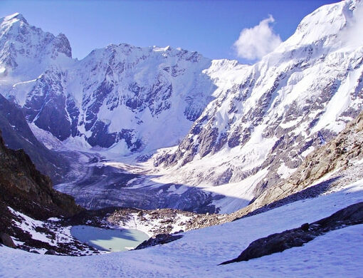 3.1 До поселка Безенги ведет асфальт, сразу за ним начинается грейдер. Еще через несколько км погранзастава. Дорога проходима для недоприводов, через 15 км приходит в альплагерь — несколько больших домов. Мы стояли прямо в альплагере, но очень много народу. Можно сходить на ледник — нужно договорится с начальником лагеря. Хотя наверно можно и втихую..мы не пробовали. Вид на ледники из лагеря потрясающий.