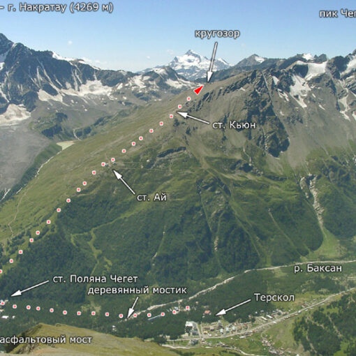 Попасть к началу новой тропы можно доехав подъемником «Чегет-I» до «Кафе «Ай»» (2750), а если он не работает, проделать этот путь по грунтовой дороге, идущей от нижней станции подъемника. Группы, имеющие запас времени, могут, оставив рюкзаки, подняться до станции «Чегет-II» (3050), чтобы полюбоваться панорамой Эльбруса и верховьев Баксана.