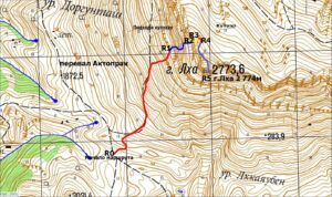 Нитка маршрута: перевал Актопрак – перевал Лха – вершина г.Лха