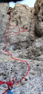 Участок R2-R3: кулуар 0,1км проход в кулуар (2630м, 43.41031, 43.107) до скального участка (2680м, 43.41056, 43.10795). При повышенных осадках и влажности возможно понадобиться страховка. Надежных мест для точек страховки на участке мало.