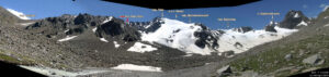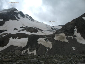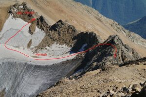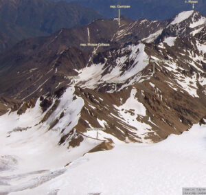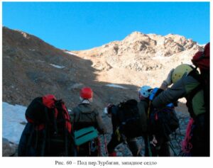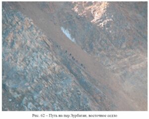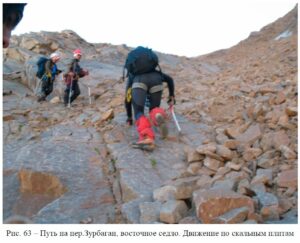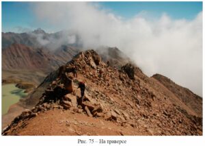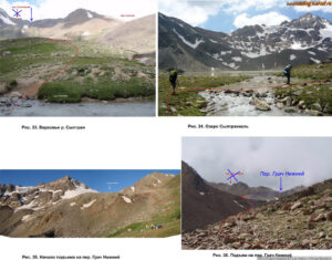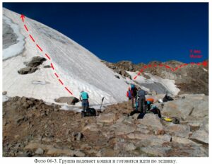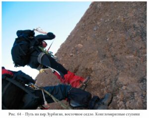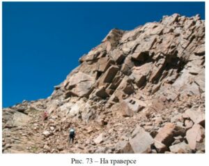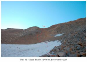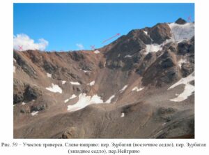 Описание препятствий: описание препятствий приведено в описании маршрутов. Скалы, снежные и осыпные склоны крутизной от 20 до 45°, участки льда на склонах, покрытые снегом, закрытые ледники с участками скрытых трещин крутизной до 30°.