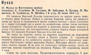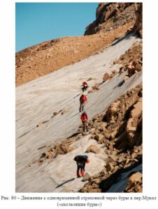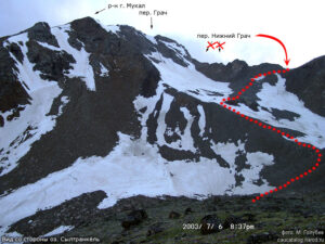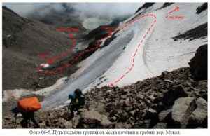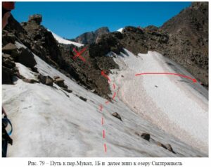 Маршруты аварийных выходов: спуск по пути подъема. При траверсе вершин аварийный спуск пер.Мукал/