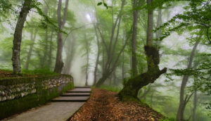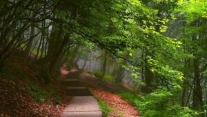 Маршрут на вершину проходит через тропу Нартов, пройти 1000 ступенек, далее по хорошо протоптанной тропе с метками (на маршруте места для отдыха), привала и пройти весь маршрут по лесу.