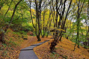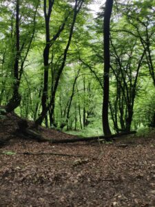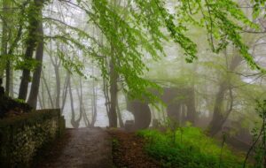 Все склоны и сама вершина покрыты тенистым буковым лесом с примесью кавказского граба, ясеня, осины, дуба, липы, лещины. На гору Нартия тропа идёт по гребню горы Кизиловка.