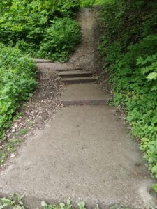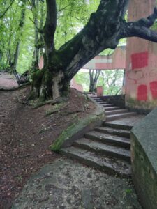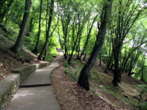 Маршрут промаркирован в обе стороны, от вантового пешеходного моста до вершины горы Нартия.