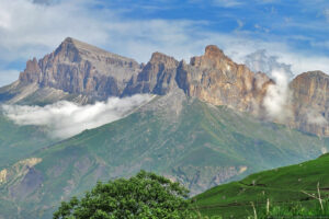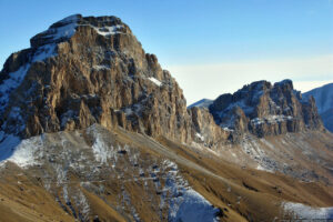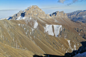Вид на вершину Иткаябаши (3198 м.н.у.м.) и скалистый хребет Аккая с перевала Соухауз