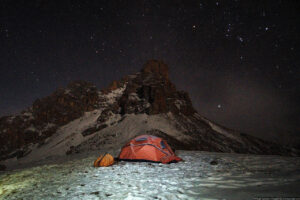 Для следующих восходителей, на вершине Соухаузкая (3 497 м.н.у.м.) оставили небольшой презент – гидратор для воды (новый) объемом 3 литра.
