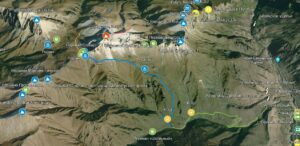 Нитка: г.Нальчик — с.В.Балкария — на авто до КОШ (на пер. Школьный 7км, 1 673 м.н.у.м.) — пеший под рюкзаком подход к вершине на пер. Соухауз (7км, 2 986 м.н.у.м.)