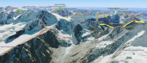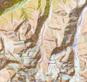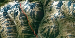 Нитка маршрута: с.В.Балкария 1 205 м.н.у.м. (43.11174, 43.44297) — долина Рцывашки (Ишкирты) — ледник Рцывашки 2 950 м.н.у.м. (42.98262, 43.42645)