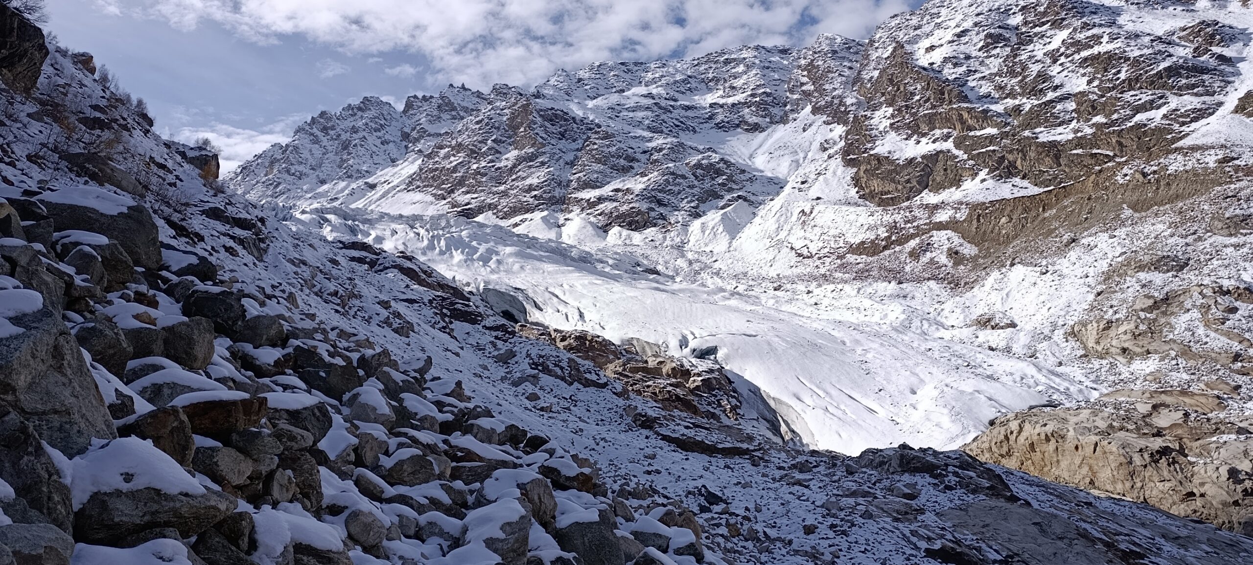 Через 1,5 часа пути вы достигнете нижнего края ледника (2 600 м). Вас встретит каменный хаос — гигантские валуны, принесённые сюда древними тектоническими катаклизмами. Здесь, среди вечного льда и цветущих альпийских лугов, рождается невероятный контраст: жизнь и смерть, тепло и холод, движение и покой 🌸❄️.
