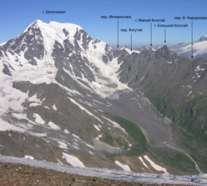 С вершины открываются отличные виды на вершины Большой и Малый Когутаи, верховья р. Юсеньги (фото 4), на Донгуз-Орун и Накру (фото 5), на верховья р. Донгуз-Орун, на Чегет, Эльбрус, его восточные отроги. Вдалеке видны вершины Узункола.