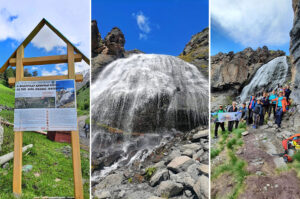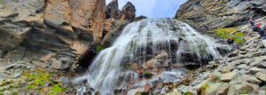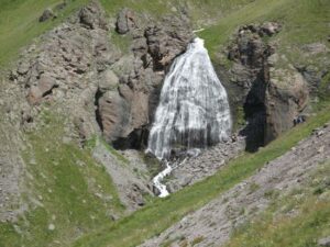 Стоя на возвышении, где находится водопад, можно рассмотреть панораму, которая открывается на величественные вершины Главного Кавказа.