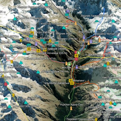 Рядом с водопадом проходит тракторная дорога через пик Терскол на 105 пикет и далее на Ледовую базу. В краях сто пятого пикета сохранились до нашего времени огневые точки русских и германских армий со времён Великой Отечественной войны.