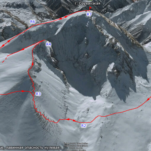 Спуск – по кулуару, левее Каракаи. В непогоду камнеопасно! Зимой может быть лавиноопасно.
