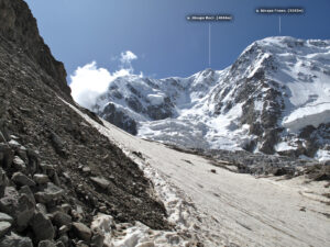 5203 метра над уровнем моря. Только скалы, лёд, снег, трещины, лавины, камнепады, мороз и обжигающее солнце. Казалось бы, никакого комфорта, но при наличии более-менее сносной палатки, скудного рациона и топлива для горелки, здесь для тех, кто любит горы — даже не курорт, а рай.
