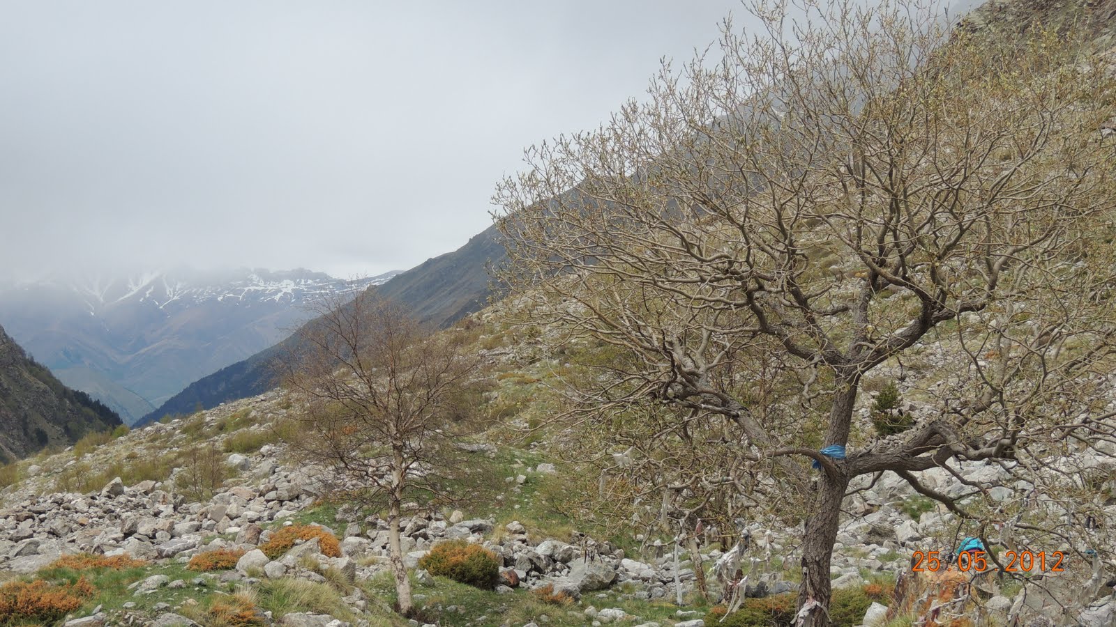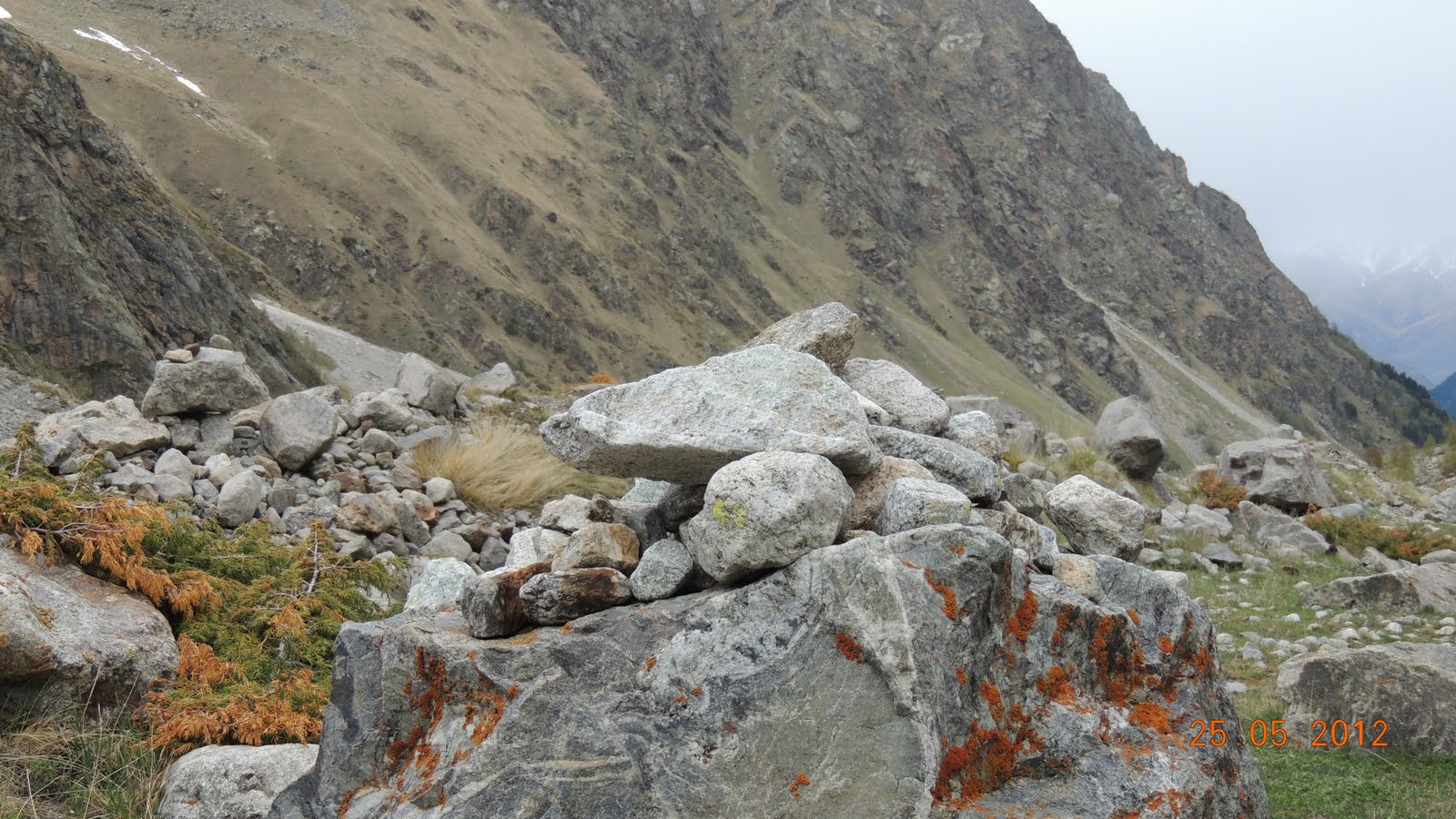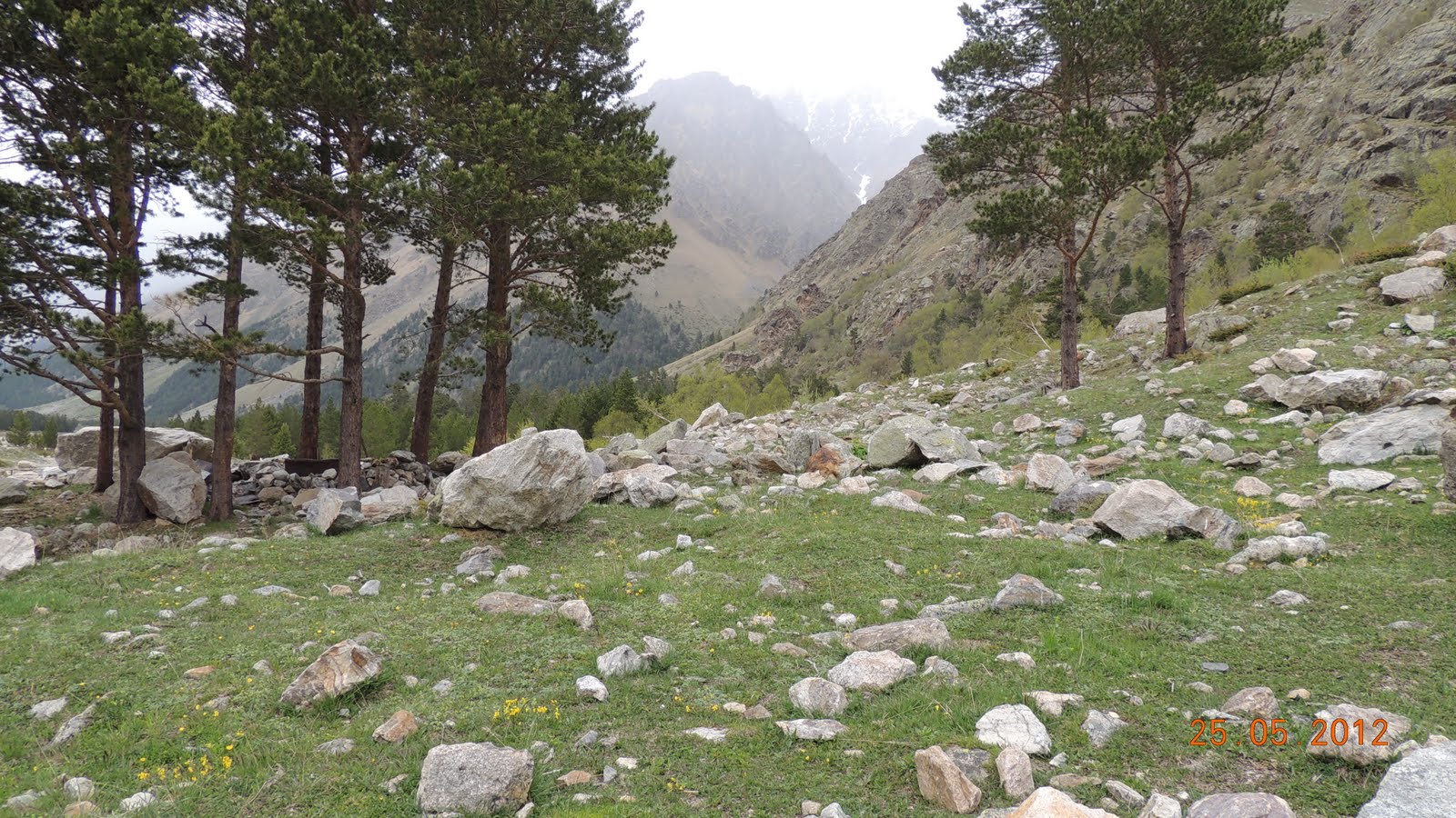 Доехали до альплагеря и далее двинули пешком.   Климат здесь несколько отличается от района Терскола, Чегета и Азау, расположенного в том же регионе и на той же высоте. Так в Адыр-су преобладает менее ветреная погода, но из-за того, что теплые массы с равнины напрямую не поступают в ущелье, чуть более холодная. Именно поэтому снег даже на высоте альпбазы «Уллу-тау» лежит до середины мая