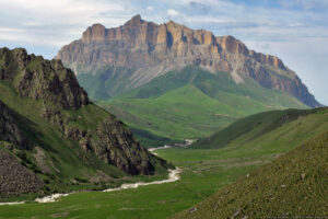 26. С перевала Курноят спустились в долину Псыгансу (Сукан-су), откуда вот такой классный вид на Мехтыген, на вершине которого еще были накануне.