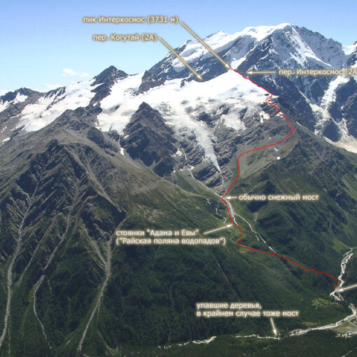 (Поселок Терскол — «Новый кругозор» — «105-й пикет» — «Ледовая база» — поселок Терскол. Протяженность — 26 км, продолжительность — 3 дня. )