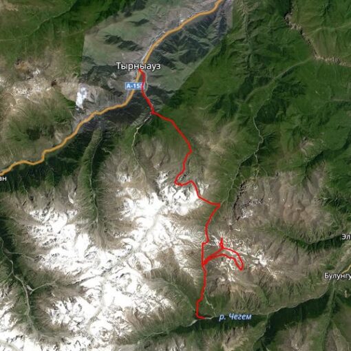 (Верхний Баксан — река Адыр Суу — альплагерь «Джайлык» — река Клум Кол Суу — ледник Юном — Верхний Баксан. Протяженность 30 км, продолжительность — 2 дня. )