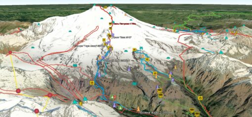 (Поселок Терскол — «Новый кругозор» — «105-й пикет» — «Ледовая база» — поселок Терскол. Протяженность — 26 км, продолжительность — 3 дня. )