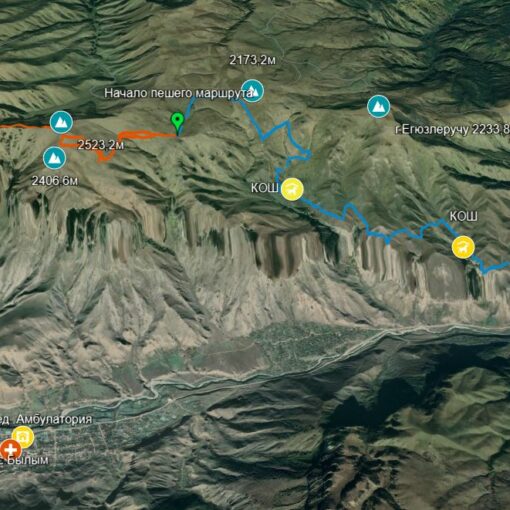 (Поселок В. Баксан — долина Кыртык — скала Уллу Кая — поселок В. Баксан. Протяженность -35 км, продолжительность 2 дня. )