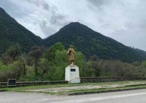 По лесу тропа идёт 3-4км, далее в доль реки до самого ледника у которого образовано ледниковое небольшое озеро.